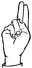 На ћирилици написано АНДРЕЈ ЈОВЕЉИЋ састоји се из 13 слова [?]. Исписано ћириличном једноручном азбуком за глувонеме: